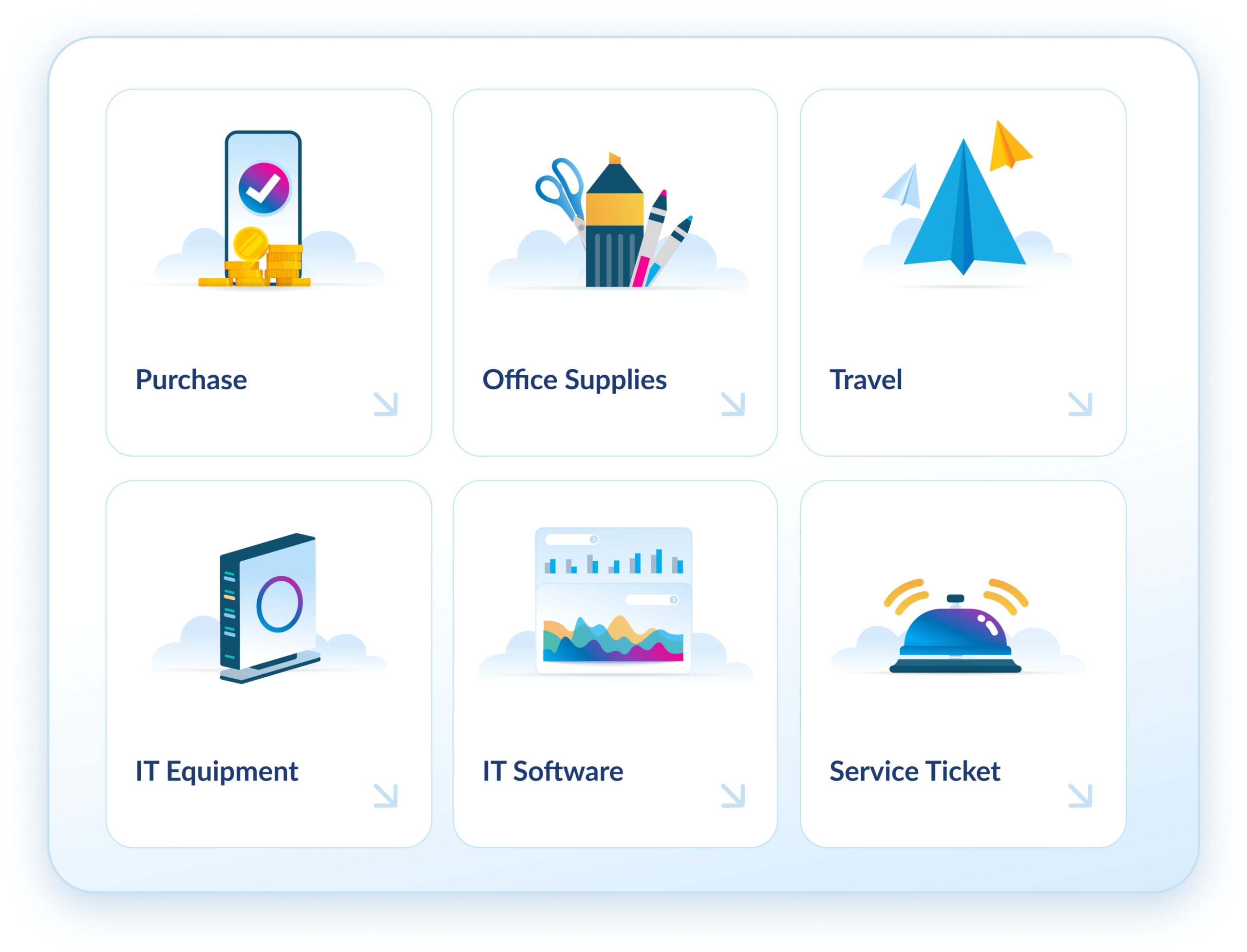 Configure request-to-fulfillment workflows for POs, cards, and service tickets without forcing teams into a rigid operating model.